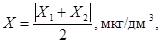 X - результат измерения (среднее арифметическое значение двух параллельных определений), мкг/дм3.