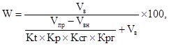 W - объемная доля воды в сырой нефти в рабочих условиях, %;