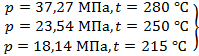 p = 23,54 МПа, t = 250 °C; p = 18,14 МПа, t = 215 °C |