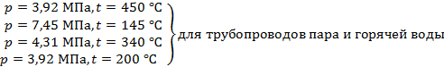 p = 3,92 МПа, t = 450 °C; p = 4,31 МПа, t = 340 °С; |