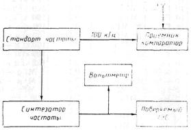 При отсутствии у синтезатора частоты градуированного по напряжению выхода сигнала необходимо значение этого напряжения контролировать вольтметром (см. черт. 2 справочного приложения 2).