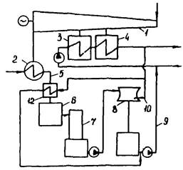 сетевые подогреватели; 7 и 9 - подогреватели исходной и обессоленной воды;