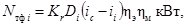 Kr - коэффициент, учитывающий увеличение мощности за счет регенеративного подогрева конденсата подогревателей водоподготовительной установки.
