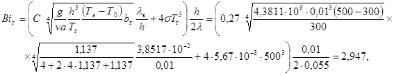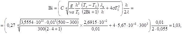 2. Принимая значение h равным 0,01 м, по выражению (25) рассчитаем другое значение критерия Био: