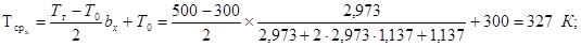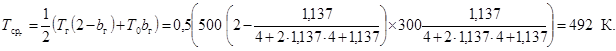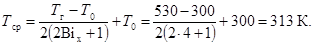 1. Принимая в первом приближении величину критерия Био на холодной стенке Bix = 2, значение критерия Био на горячей стенке Biг = 4, температуру среды в технологическом оборудовании Тг равной 500 К, вычислим среднюю (между температурами холодной поверхности и прилегающего газового пространства) температуру по формуле (36):