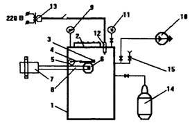 8 - передаточный механизм; 9 - манометр; 10 - вакуумный насос; 11 - вакуумметр;