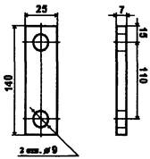 Вращающийся диск, конструкция которого представлена на рис. 2, имеет диаметр 100 мм и толщину 10 мм. В центре диска расположено отверстие диаметром 10 мм, предназначенное для закрепления диска в передаточном механизме. На диске вырезано четыре сегмента. Исследуемый образец (рис. 3), выполнен в виде пластины длиной 140 мм, шириной 25 мм, толщиной 7 мм. На пластине имеется два отверстия: одно - для закрепления пластины в экспериментальной установке, второе - для определения силы прижатия пластины к вращающемуся диску.