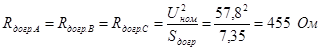 Значения сопротивлений догрузочных резисторов, включаемых в каждую фазу трехфазных трансформаторов напряжения, определяют по следующему уравнению в предположении равномерной загрузки отдельных фаз ТН
