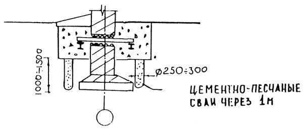 при возведении здания следить, чтобы толщина песчаной или гравийной (щебеночной) подушки под зданием соответствовала проектной (при этом объемный вес песка подушки должен быть не менее 1,65 кгс/см3);