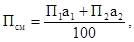 где П1, П2 - содержание пылевидных и глинистых частиц соответственно в щебне (гравии), песке, % по массе;