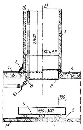 Вытяжная шахта выполняется в виде сборного пространственного короба прямоугольной или круглой формы (см. рис. 3), с утепленными или неутепленными стенками. При отсутствии под шахтой водосборного поддона (см. п. 4.6) ее стенки должны иметь теплозащиту не ниже 0,7 расчетного термического сопротивления покрытия, для чего их рекомендуется делать из керамзитобетонных панелей с бетонным слоем. При наличии поддона стенки шахты могут выполняться неутепленными, но из плотного морозостойкого бетона (см. п. 5.8) при минимальной толщине стенок 60 мм.