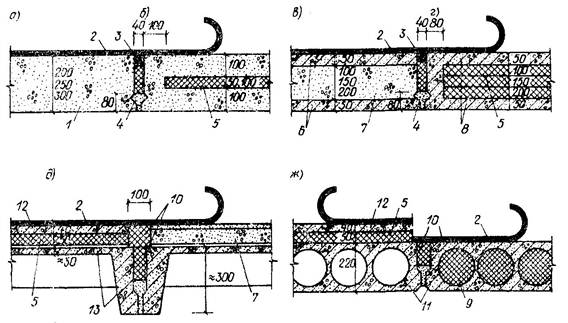 покрытие с рулонной кровлей; б - покрытие с безрулонной кровлей;