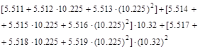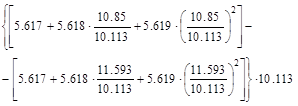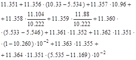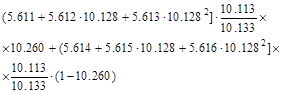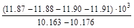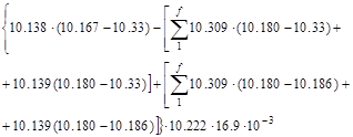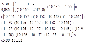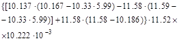[10.128 × (10.156 - 10.191) + (10.127 - 10.95) × (10.158 - 10.192) + 10.134 × (10.158 - 10.192)] × 10.222 × 10-3 |