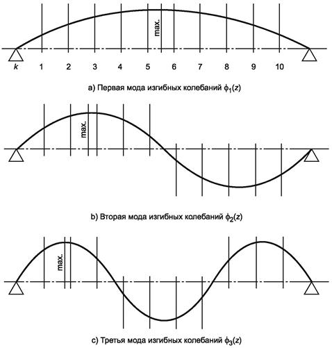 Если кривые изменения критических частот вращения подобны показанным на рисунке С.2, то данный ротор считают гибким. Для машин с жесткой опорой первая критическая частота вращения (участок d) лежит ниже рабочей частоты вращения ротора, а при низкой жесткости опоры собственная частота первой моды изгибных колебаний (участок с) лежит достаточно близко к рабочей частоте, чтобы оказывать влияние на динамику ротора.