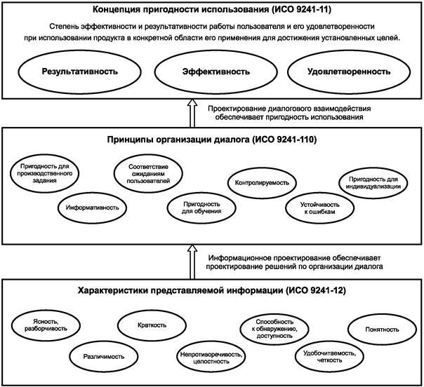 - требования к диалогу, основанные на принципах его организации для проектирования интерактивных систем, соответствующих ИСО 9241-11 и настоящему стандарту,