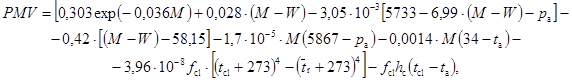 Значения показателя PMV рассчитывают по формулам (1) - (4)