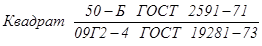 Сталь горячекатаная, квадратная, со стороной квадрата 50 мм, повышенной точности прокатки Б по ГОСТ 2591-71, марки 09Г2, категории 4: