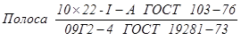 Сталь горячекатаная полосовая, толщиной 10 мм и шириной 22 мм, с серповидностью по классу 1, повышенной точности прокатки А по ГОСТ 103-76, марки 09Г2, категории 4: