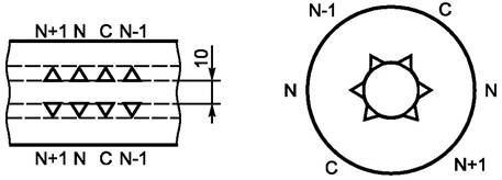 С - испытуемые образцы; N - 1, N и N + 1 - пирометрические контрольные конусы в ожидаемом температурном интервале испытуемого образца