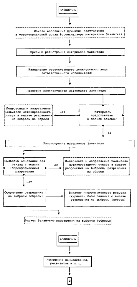8. Основанием для начала исполнения государственной функции по выдаче разрешений на выбросы, сбросы является представление в территориальный орган Ростехнадзора хозяйствующим субъектом (далее - Заявитель) заявления, оформленного в соответствии с Приложением 1 к настоящему Регламенту, и следующих документов: