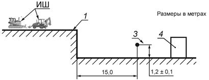 7.1.4 Если стройплощадка располагается на насыпи или эстакаде, то точки измерений располагают на расстоянии 15 м от основания насыпи (эстакады), при расположении стройплощадки в выемке - в 15 м от верхнего края выемки.