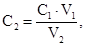 V2 - вместимость мерной колбы, см3.