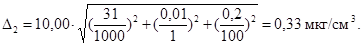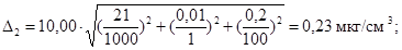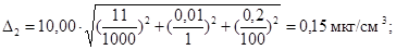 где D2 - предел возможных значений погрешности приготовления аттестованного раствора АР2-П, мкг/см3;