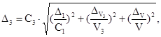 отклонения объема V1 от номинального значения, см3;