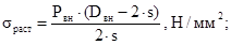 σраст - растягивающее окружное напряжение от внутреннего давления, Н/мм2;