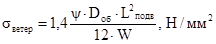 W - момент сопротивления поперечного сечения стенки трубы,