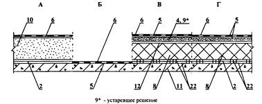 6 - наружные стены подвала; 7 - пол на грунте; 8 - лоджии (балконы); 9 - полы в санитарных узлах;