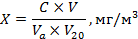 V20 - объем воздуха, отобранный для анализа и приведенный к стандартным условиям (давление 760 мм. рт. ст., температура 20 °С), дм3