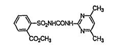 Название действующего вещества по ИЮПАК: метиловый эфир 2[4,6-диметилпиримидин-2-ил карбамоилсульфамоил] бензойной кислоты.