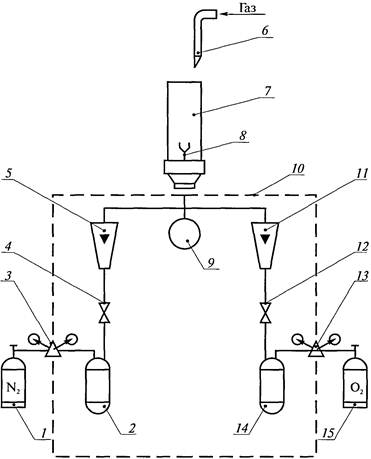 Для испытаний используют стенд, схема которого приведена на рис. 1. Стенд состоит из следующих элементов: