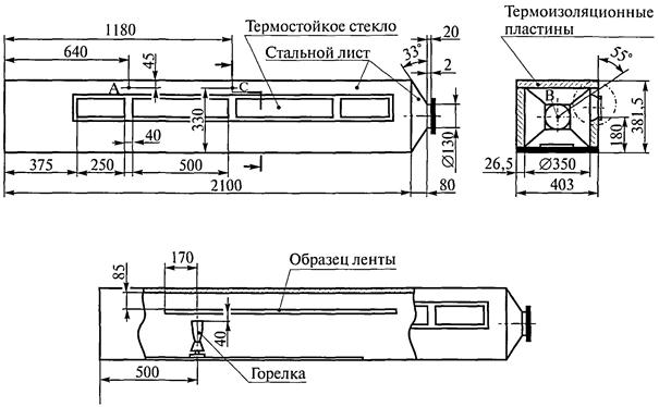 Схема установки для определения температуры воспламенения ленты приведена на рис. 1.