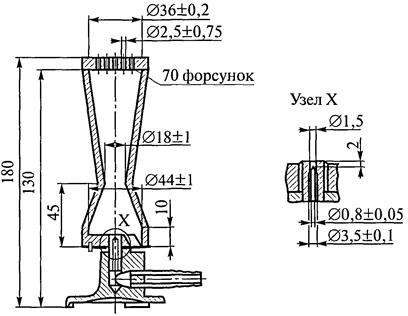 ламинатора из жаростойкой стали 6 в форме конуса верхним диаметром ≤ 78 мм, нижним диаметром ≤ 11 мм и длиной 500 ± 5 мм для подачи естественного потока воздуха в реакционную камеру;