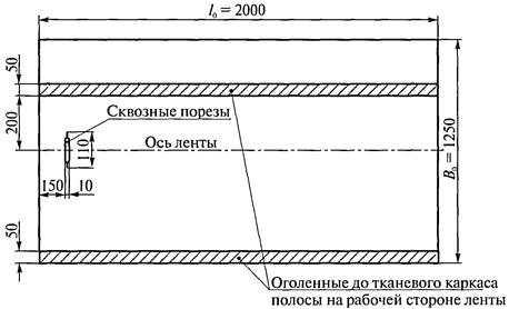 Для каждого испытания используют по три образца, вырезанные из ленты, отступая не меньше чем на 100 мм от борта ленты и не меньше чем на 1 м от конца ленты.