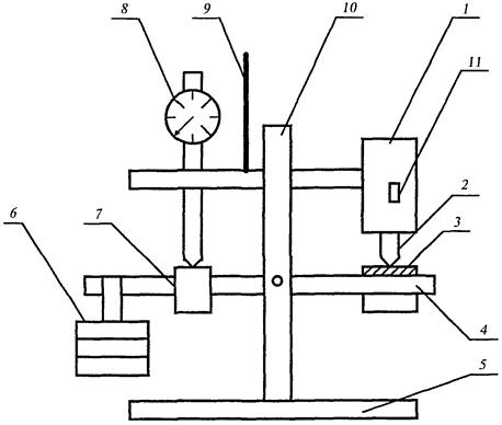 приспособления 6, служащего для нагружения и прижатия опорной площадки с испытуемым образцом к индентору;