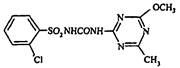 Название действующего вещества по ИЮПАК: 1-(2 хлорфенилсульфонил)-3-(4-метокси-6-метил-1,3,5-триазин-2-ил) мочевина.