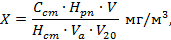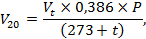 V20 - объем воздуха, отобранный для анализа и приведенный к стандартным условиям (давление 760 мм. рт. ст., температура 20 °С), дм3