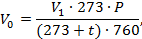 V0 - объем воздуха, отобранный для анализа и приведенный к нормальным условиям, дм3, рассчитывают по формуле (2):
