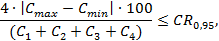 CR0,95 - значение критического диапазона для уровня вероятности Р = 0,95 и n - результатов определений: