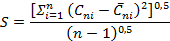 Рассчитывают среднее квадратичное отклонение измерений концентраций: