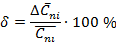 t - коэффициент нормированных отклонений, определяемый по таблицам Стьюдента, при доверительной вероятности 0,95. Затем рассчитывают относительную погрешность определения концентраций: