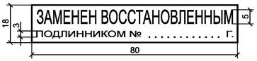 Г.2. Штамп «ЗАМЕНЕН ВОССТАНОВЛЕННЫМ ПОДЛИННИКОМ № ... г.» с указанием порядкового номера восстановления подлинника и даты его восстановления ставят на подлинниках документов, с которых изготовлены восстановленные подлинники. Форма штампа приведена на рисунке Г.1.