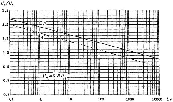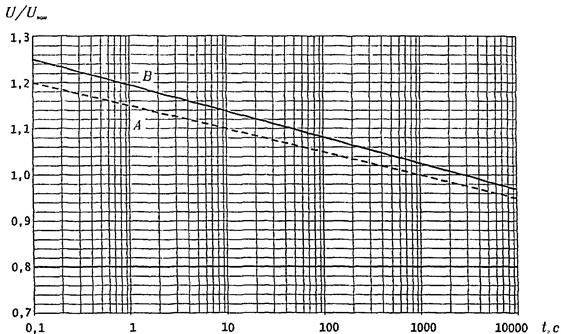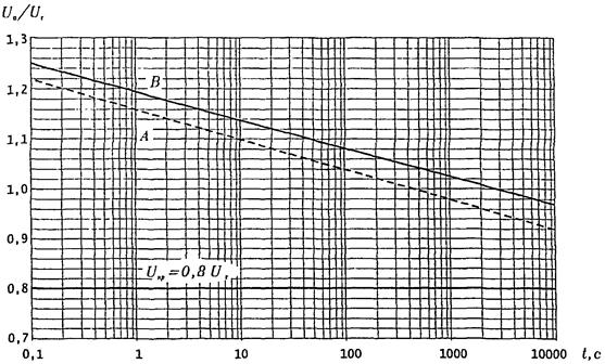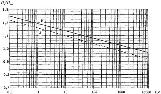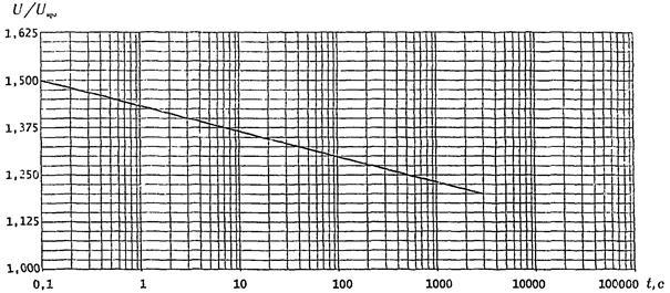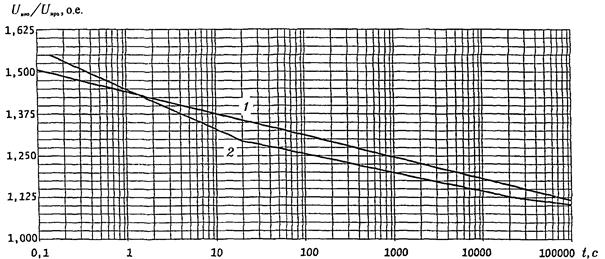 В сложных случаях, при Uу > 1,5 или возможности длительного существования установившегося режима, проверяют соответствие выбранного ОПН условиям эксплуатации по величине временно допустимой длительности ВДНО по следующей формуле: