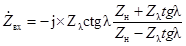 Для простейшего случая - отсутствия индуктивного сопротивления реактора или входного сопротивления следующего участка линии, в дальнейшем обозначаемом как «нагрузка», - входное сопротивление линии равно: