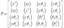 При использовании фокусирующей системы с целью формирования искусственной перетяжки для нахождения десяти моментов второго порядка в опорной плоскости по уже полученным значениям десяти моментов второго порядка следует расположить в виде матрицы пучка Р0 (см. раздел 3) все 10 моментов второго порядка и вычислить матрицу Рref опорной плоскости по формуле