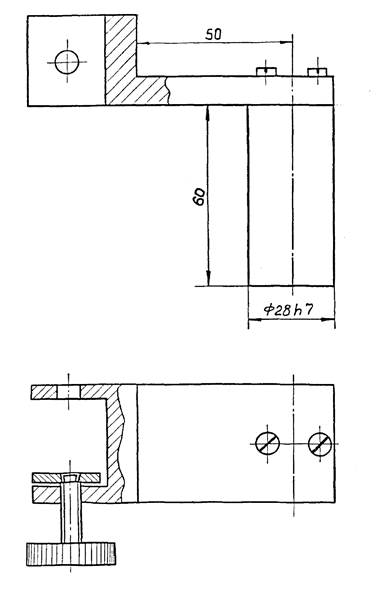 4.8.2. Погрешность отсчетного устройства скобы с верхним пределом измерений 50 мм определяют по методике, изложенной в п. 4.8.1. При этом на выступающую часть переставной пятки скобы необходимо надеть приспособление с дополнительной пяткой и между измерительной поверхностью подвижной пятки и насадки поместить концевые меры длины.