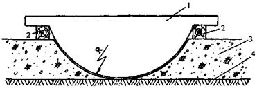 Армогрунтовая мембрана (геомембрана) - конструкция, состоящая из грунтового слоя в замкнутой оболочке из армирующих полотнищ, предназначенная для восприятия растягивающих напряжений и равномерного распределения давления на МГТ от вышележащих слоев грунта и полезной нагрузки.